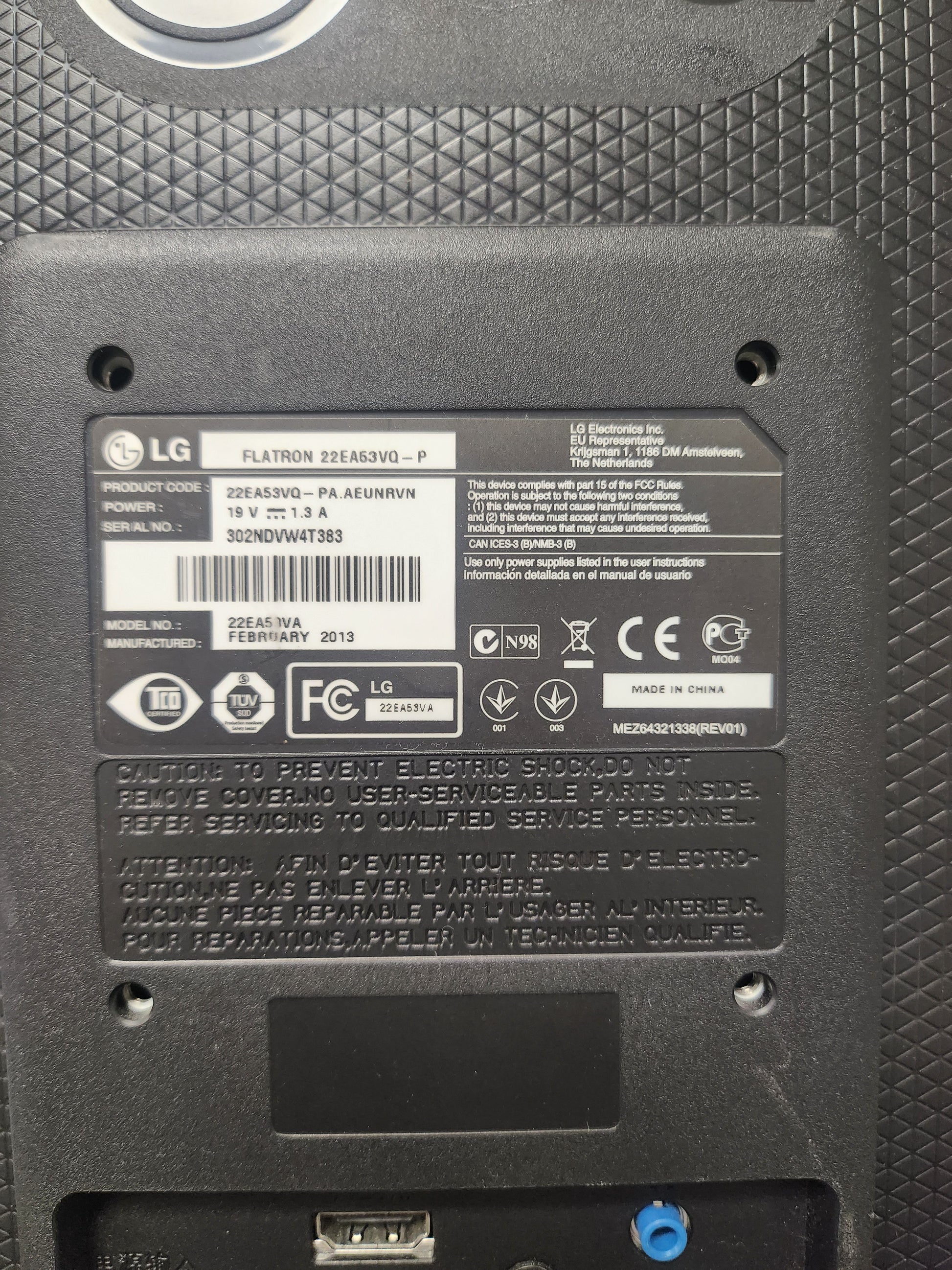 LG Flatron 22EA63VQ-P Monitor 21,5Inch PC Beeldscherm