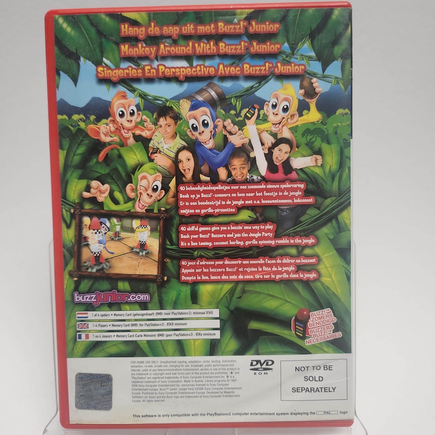 Kruip in de huid van een ondeugend aapje, daag je vrienden uit en word 'King of the Jungle'. Gebruik de Buzz!-zoemers en stort je in de snelle, superleuke actie. Minigames in overvloet! Waag je hals in de bek van een leeuw, bekogel opdringerige schildpadden met kokosnoten of maak scheetgrappen in het oerwoudbubbelbad.