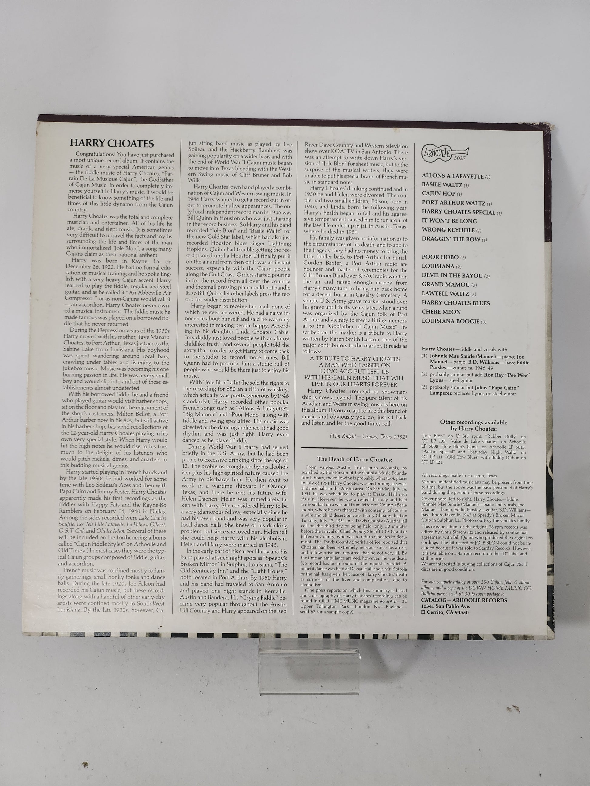 Fiddle King of Cajun Swing: His Original 1946-1949 Recordings: Harry Choates LP Vinyl